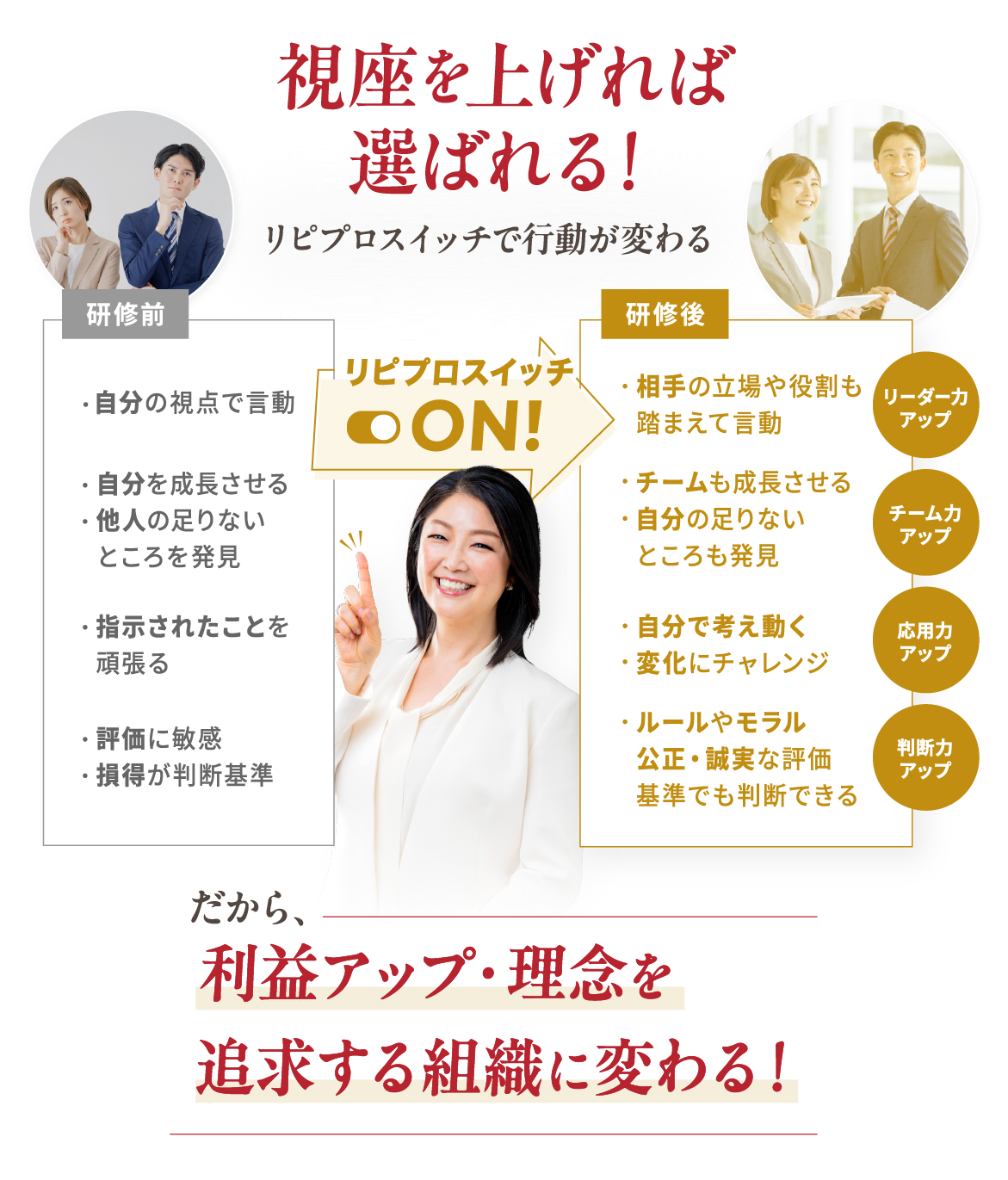 リピプロ®研修は単なるやり方やスキルを教えるものではありません。