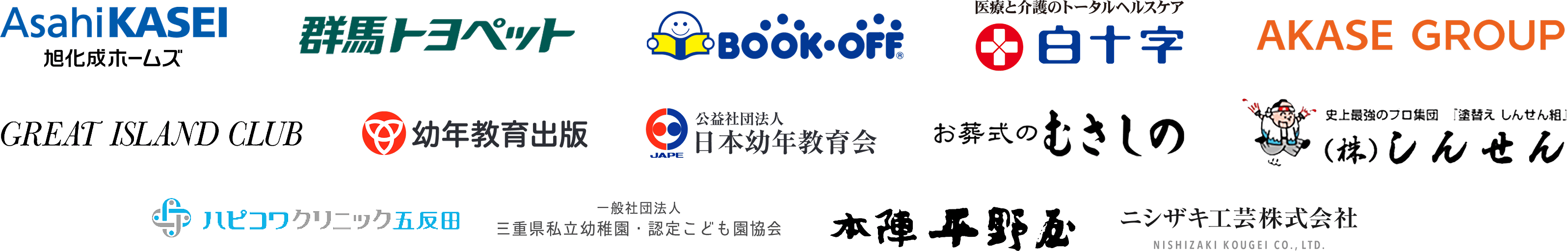 旭化成ホームズ株式会社 / 群馬トヨペット株式会社 / ブックオフコーポレーション株式会社 / 白十字株式会社 /